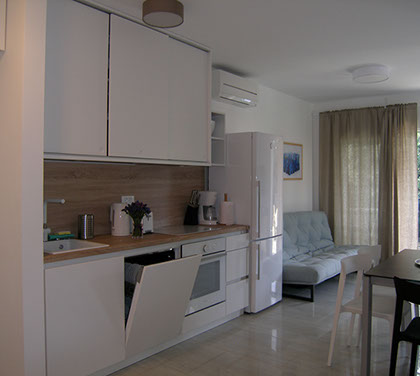 Cada apartamento tiene sala de estancia con la cocina bien equipada, varias duchas y aseos, dormitorios con camas matrimoniales o individuales y sofa camas.